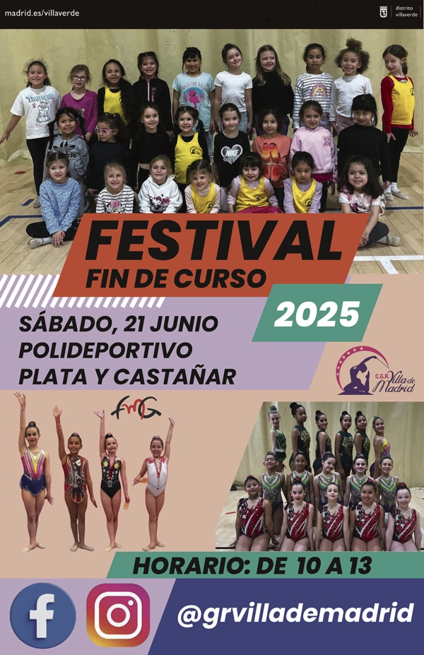 Desde el Club Villa de Madrid quieren invitar a todos los vecinos de Villaverde a su festival de fin de curso, para comprobar el gran trabajo que realiza con este bonito deporte y animar a traer a los niños y niñas a probar. Podéis contactar a través de sus redes sociales (Facebook o Instagram) @grvillademadrid o en el teléfono 606 846 191. ¡Allí estaremos!