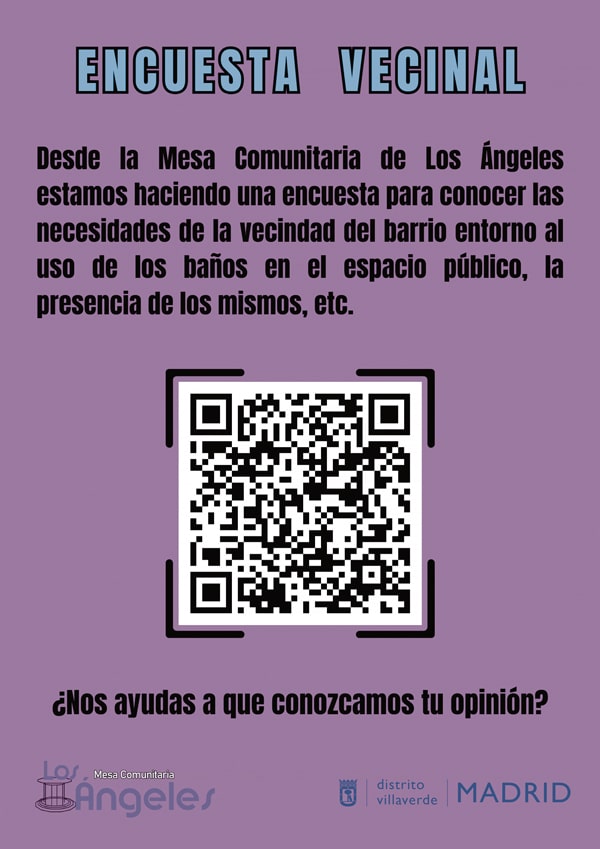 Teniendo en cuenta todo esto, si quieres ayudarnos plasmando tu opinión sobre la necesidad de baños de uso libre en el barrio de Los Ángeles, puedes hacerlo contestando a la encuesta del siguiente link: Encuesta Baños de Uso Libre.