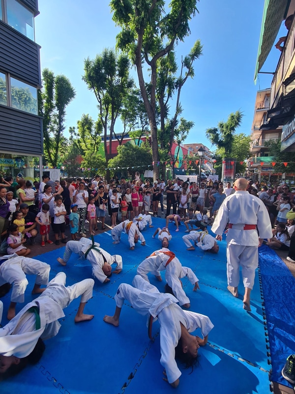 Los judokas del Club Castilla —desde los más pequeños hasta los adultos— ofrecieron una exhibición en plena calle, donde mostraron técnicas de judo, juegos de iniciación y algunos combates.