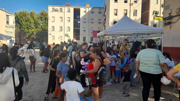 En la tarde de ayer, 28 de septiembre, la Colonia Experimental estaba de fiesta. Y menudo fiestón celebraron, vecina, para conmemorar el octavo aniversario de su transformación en ARRU (Área de Regeneración y Renovación Urbana), que tuvo lugar el 30 de septiembre de 2015. Un año más, el Servicio de Acompañamiento Social para la transformación urbana de la Colonia Experimental, en colaboración con el resto de los servicios del Programa de Intervención Comunitaria del departamento de Servicios Sociales de la Junta Municipal y otros recursos y entidades del Distrito, junto al vecindario, organizado en la Asociación Administrativa de Cooperación de la Colonia Experimental Villaverde Madrid, brindaron al barrio numerosas y muy variadas actividades y espectáculos que encantaron a los asistentes a esta colorida celebración.