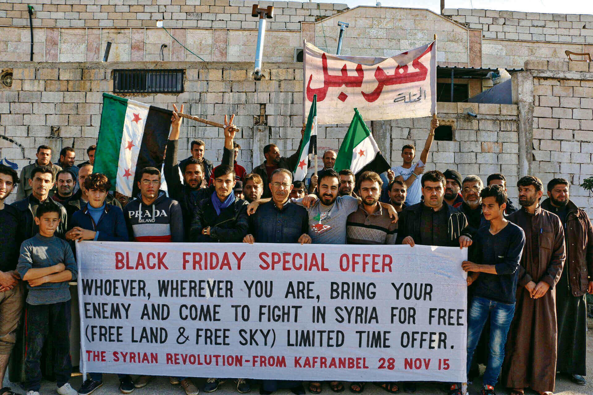 “Oferta especial Black Friday: quien quiera que seas y estés donde estés, trae a tu enemigo a luchar en Siria gratis (tierra y aire gratuitos). Oferta de tiempo limitado”, o “Si lo que importa es que Asad no use armas químicas, permitídselo, porque es mucho mejor morir con ellas que con los misiles Scud”, o “El pueblo sirio deserta del mundo por haberlo abandonado a su suerte”.