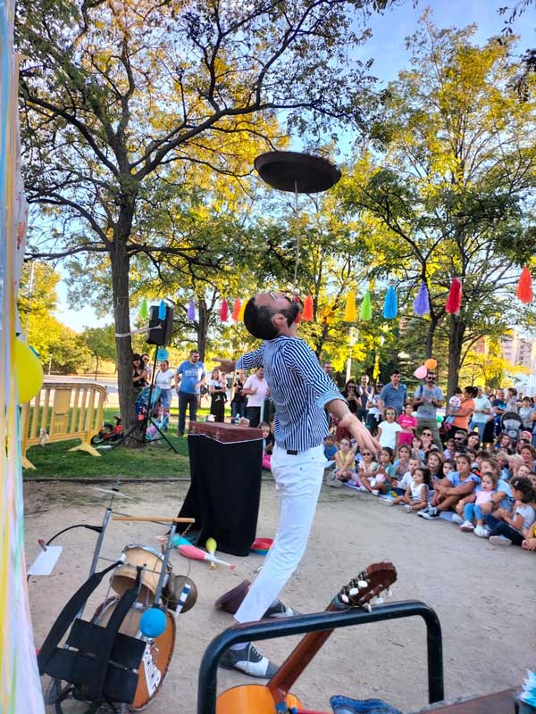 “Cada año nos resulta más difícil sacar adelante un festival de estas características con tan pocos recursos y sin contar con ningún tipo de subvención”, explican desde la organización del festival, pero también apuntan que “afortunadamente ya nos van conociendo y muchos artistas nos contactan para venir, o cuando les contactamos ya tienen referencias y aceptan a pesar de las condiciones”. Así, durante los dos días pasaron por escena un total de 11 artistas de diversas disciplinas: cuentacuentos, magia, disciplinas circenses como clowns, malabaristas, equilibristas, monociclo… cerrándose con la curiosa propuesta musical de un “hombre orquesta”.