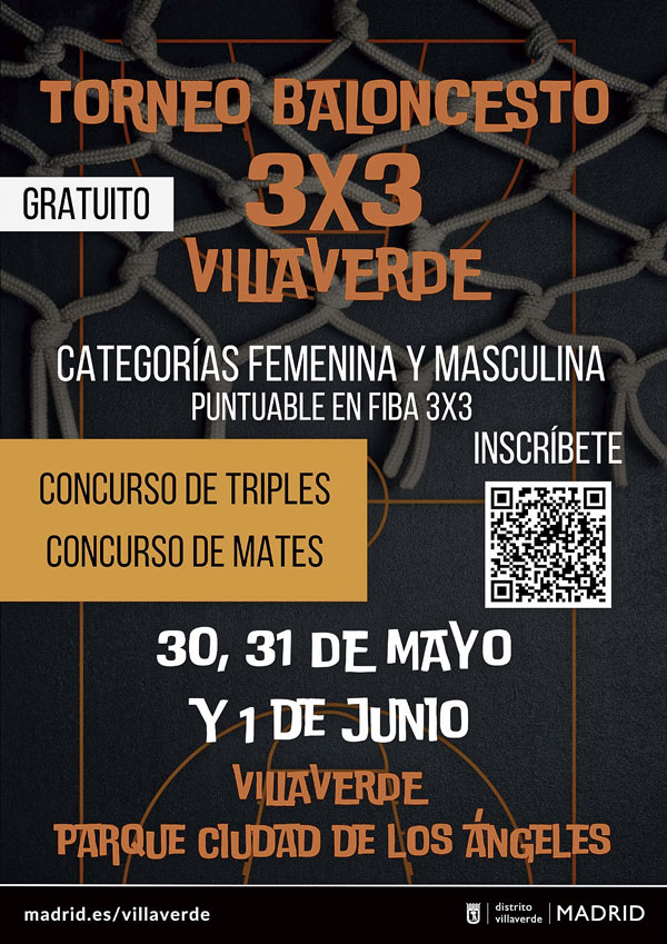Entre el 30 de mayo y el 1 de junio se disputará un torneo 3×3 de baloncesto en Villaverde organizado por la Junta de Distrito, puntuable en FIBA, con competiciones femeninas y masculinas, concursos especiales y más.